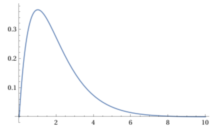 Example: For \(\alpha=2\) the density \(f(x)=xe ^{-x}\) looks like this: