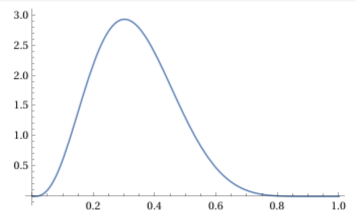 Example: if we flip the coin \(10\) times and get \(3\) heads, then the density looks like this: